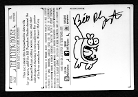 During Bill's presentation on Saturday, he showed a few of his films and talked about how they were made. Among them was the completed version of Guard Dog Global Jam, in which each scene was redone by a separate animator, in their own personal style. The "modernized" version of Winsor McCay's Flying House was also shown, fully restored, colorized, scored, and with dubbed voices replacing the inter-titles. He showed other films and told other stories, often accompanied by a drawing demonstration. Everything was enthralling, but two in particular stood out: